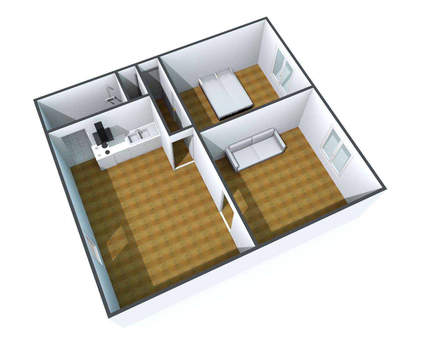 Byt se skládá ze dvou prostorných pokojů, kuchyně, koupelny, samostatného WC a předsíně.