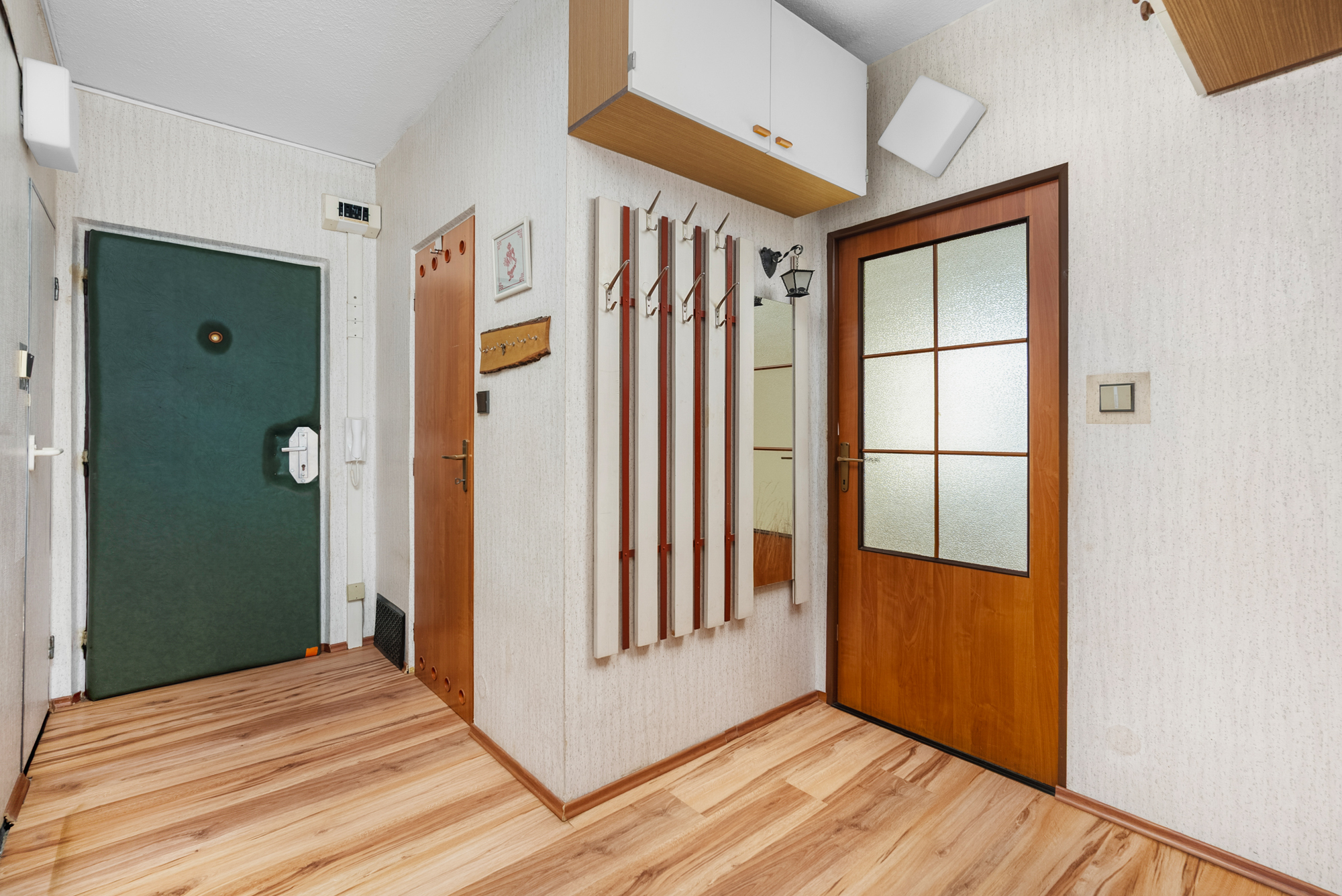 Byt je v původním stavu, nachází se zde umakartové jádro, samostatné WC, koupelna, původní kuchyňská linka a kobercové podlahové krytiny. Právě původní stav dává novému majiteli možnost pojmout rekonstrukci zcela po svém.