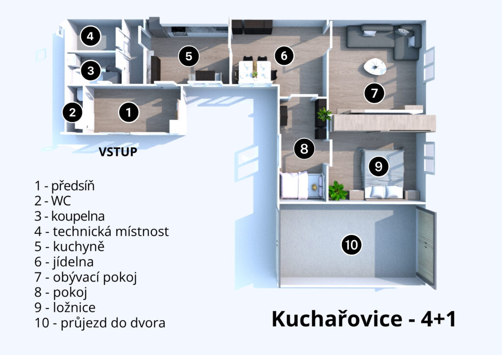 Byt se nachází ve 4. NP z 5 revitalizovaného panelového domu s novým výtahem.