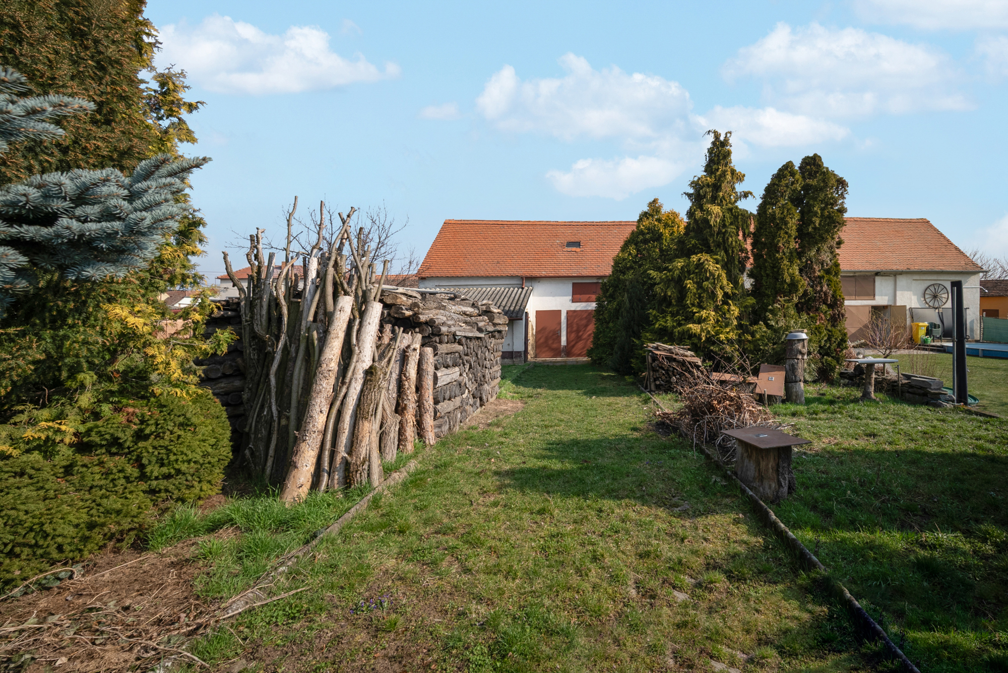 Součástí nemovitosti je zahrada, garáž, dvůr, půda a také navazující hospodářské prostory, které mohou posloužit jako dílna, sklad nebo praktické odkládací zázemí. Velkou výhodou je také příjezd k zahradě i ze zadní části domu.